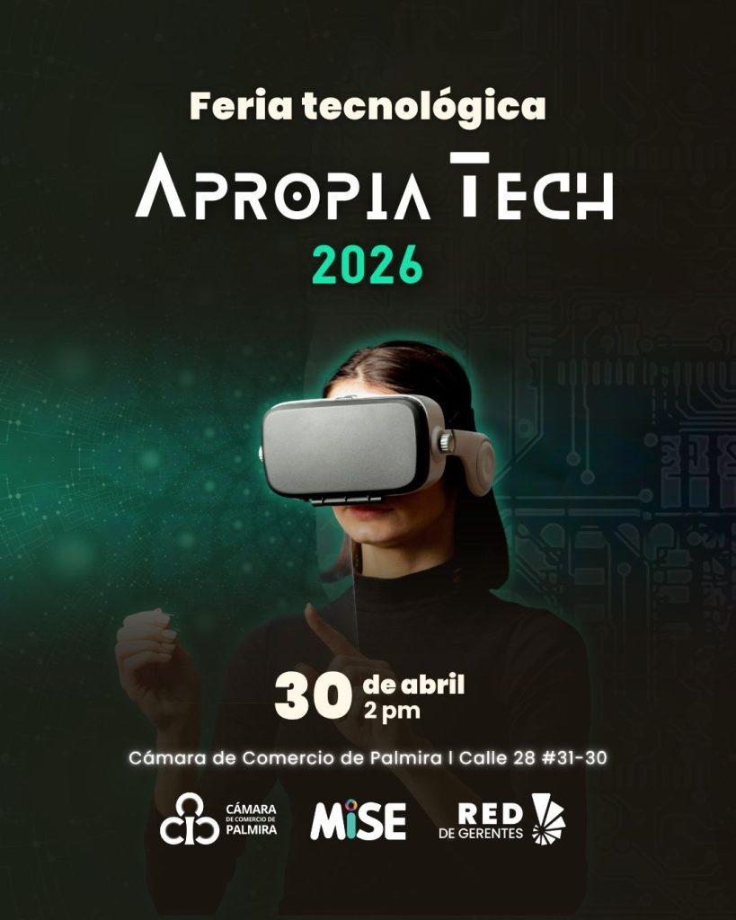 ¡Evento totalmente gratuito para nuestra ciudad! En nuestra feria tecnológica Apropia Tech 2026 tendremos stands con la oferta tecnológica de Palmira, realidad aumentada, exposiciones de mapping, conferencias de alto nivel y mucho más!